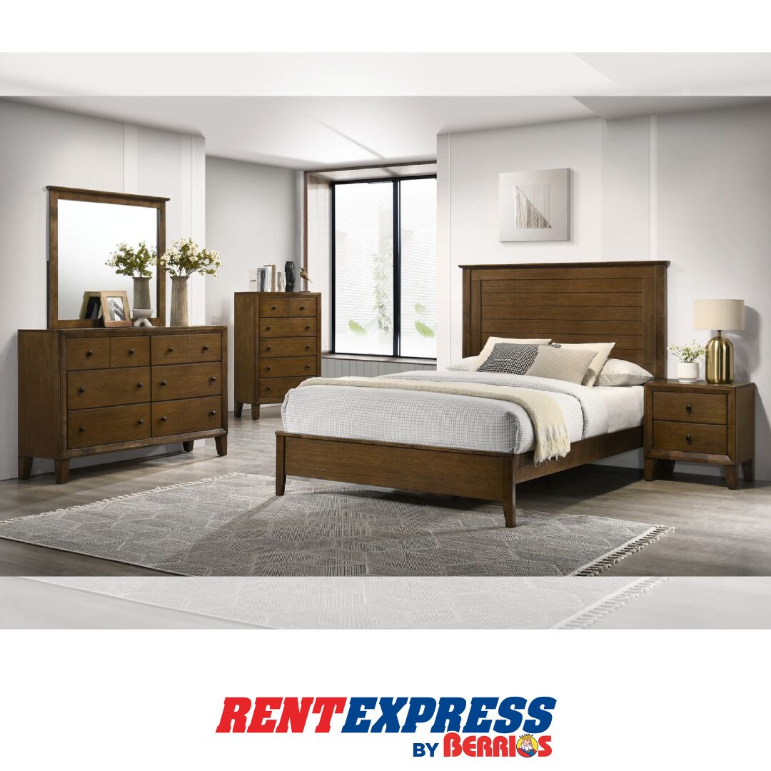 JUEGO DE HABITACIÓN 4 PIEZAS – CAMA QUEEN, GAVETERO, ESPEJO Y UNA MESA DE NOCHE.